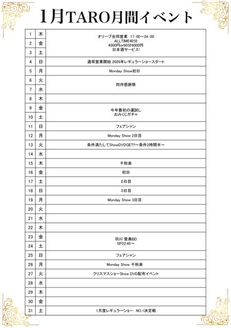 2025年12月16日~20261月15日 TARO Regular Show